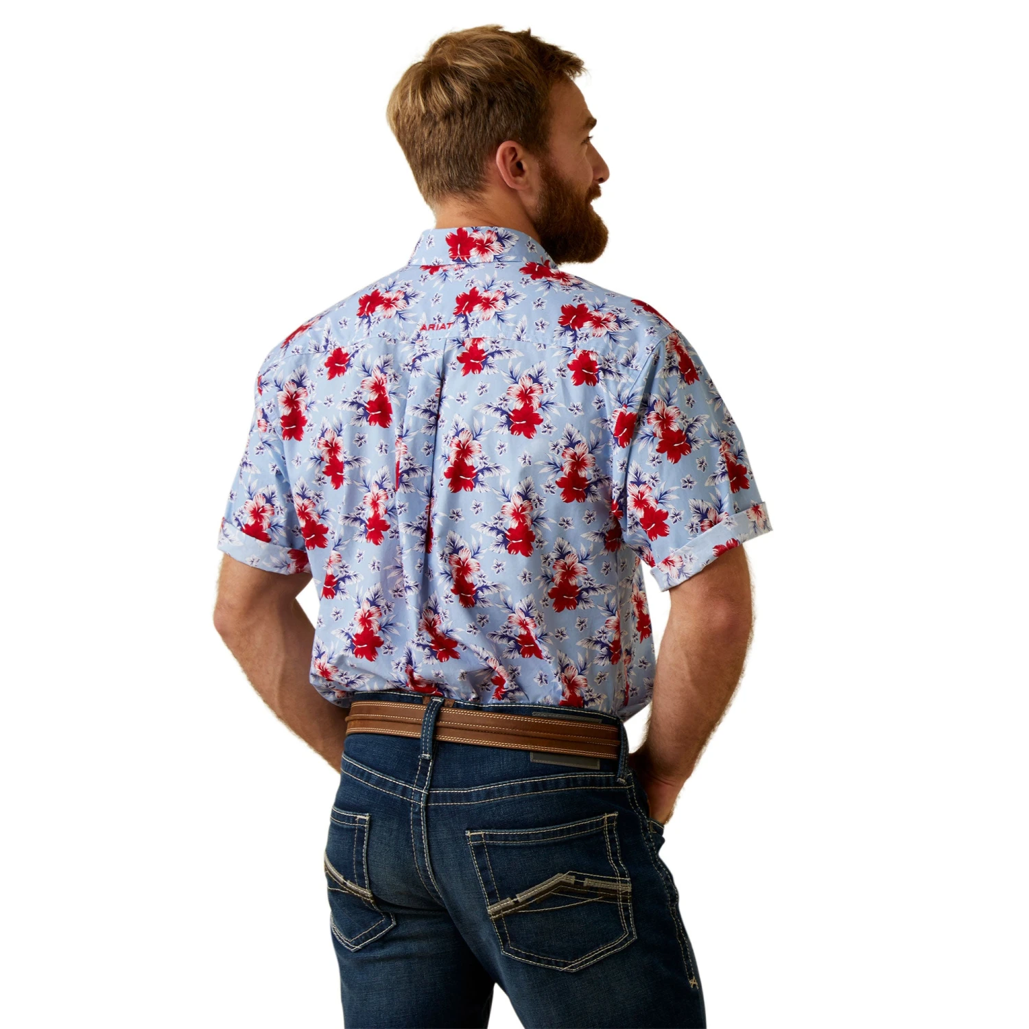 Blue and Red Hawaiian Print Short Sleeve Jeremiah Classic Fit Button Down Shirt.