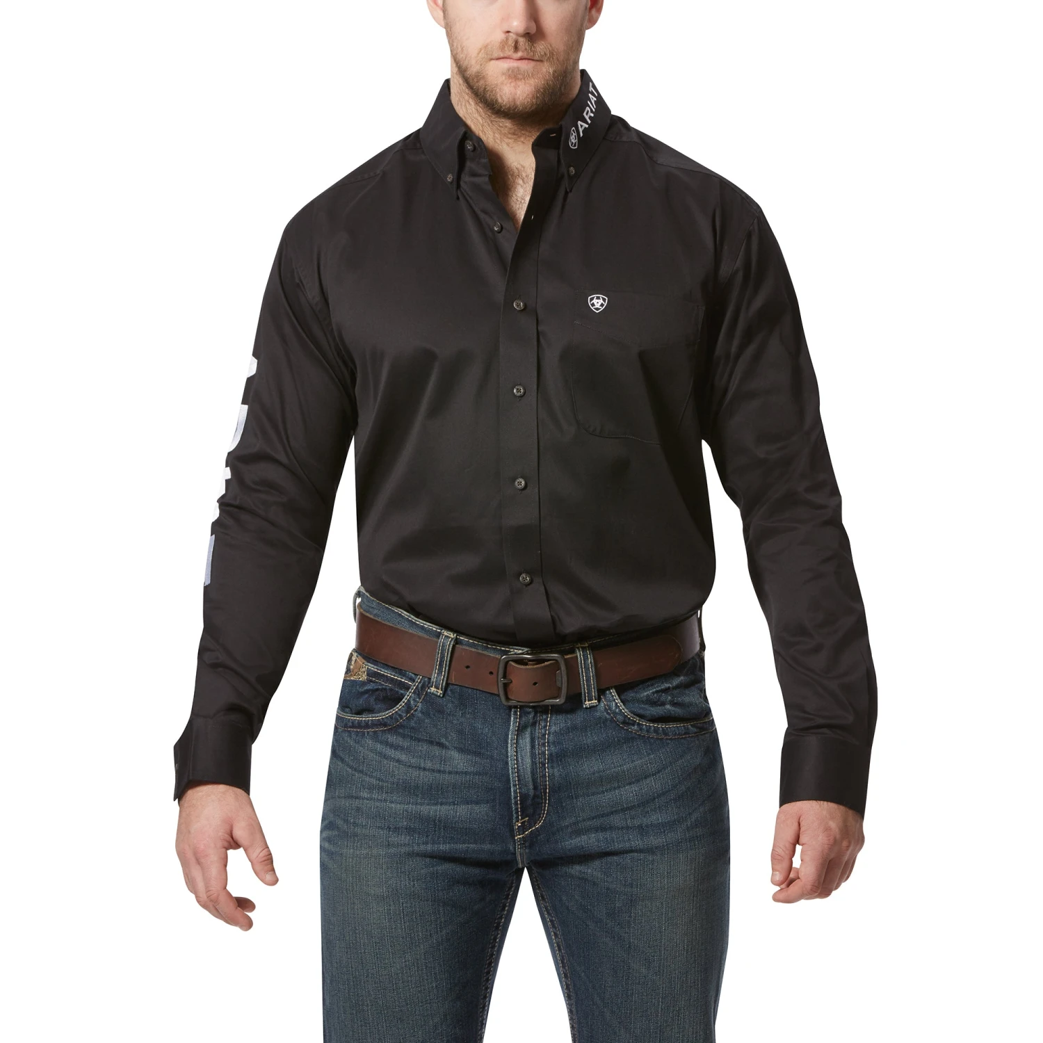 Black with White Team Logo Long Sleeve Button Down Shirt.
