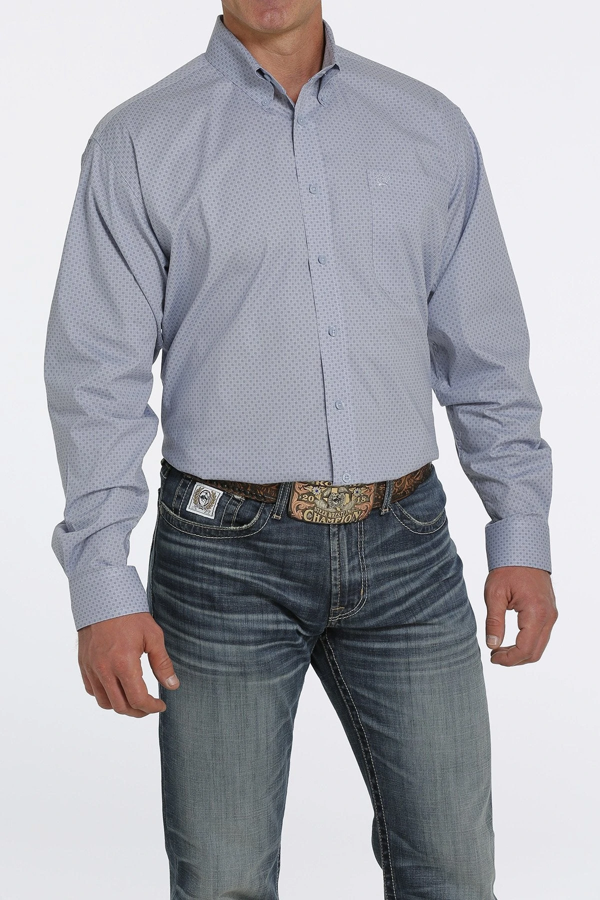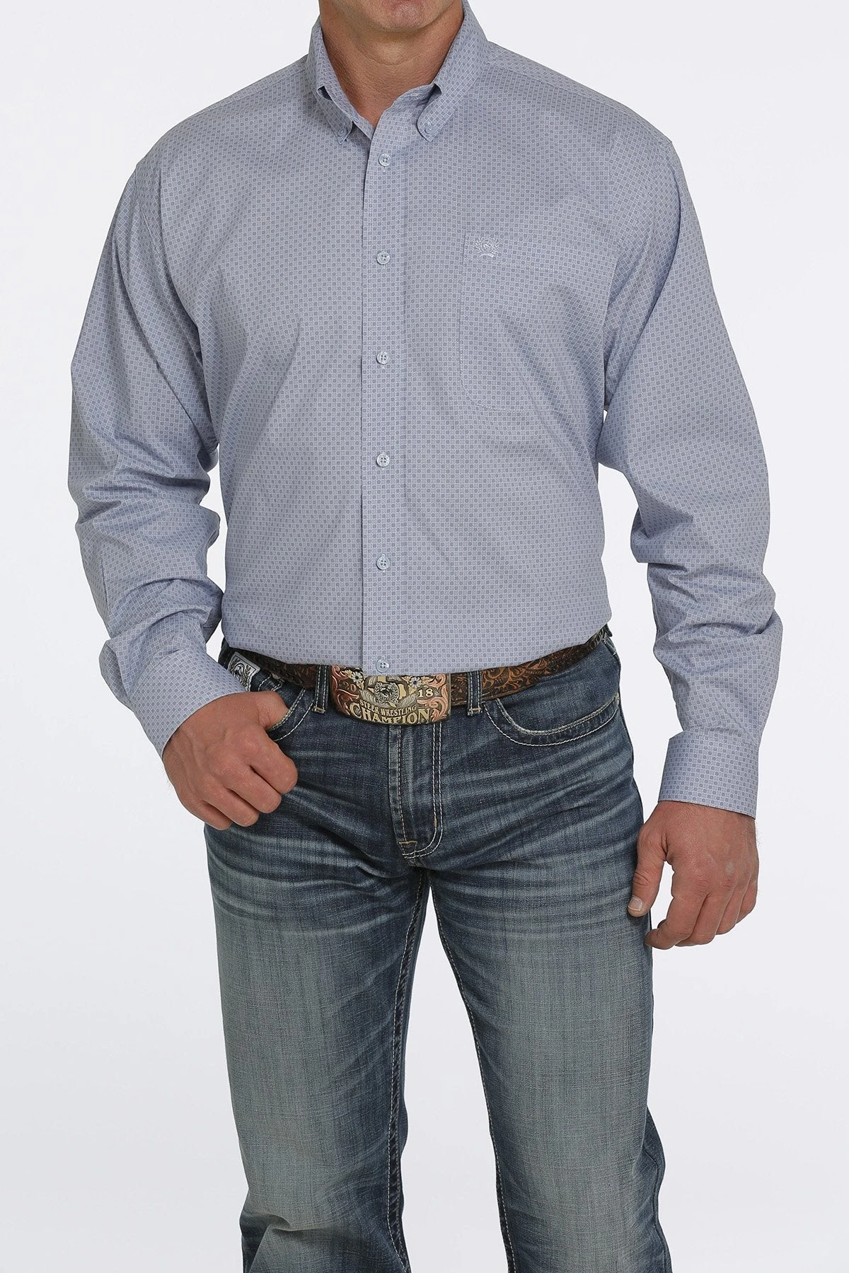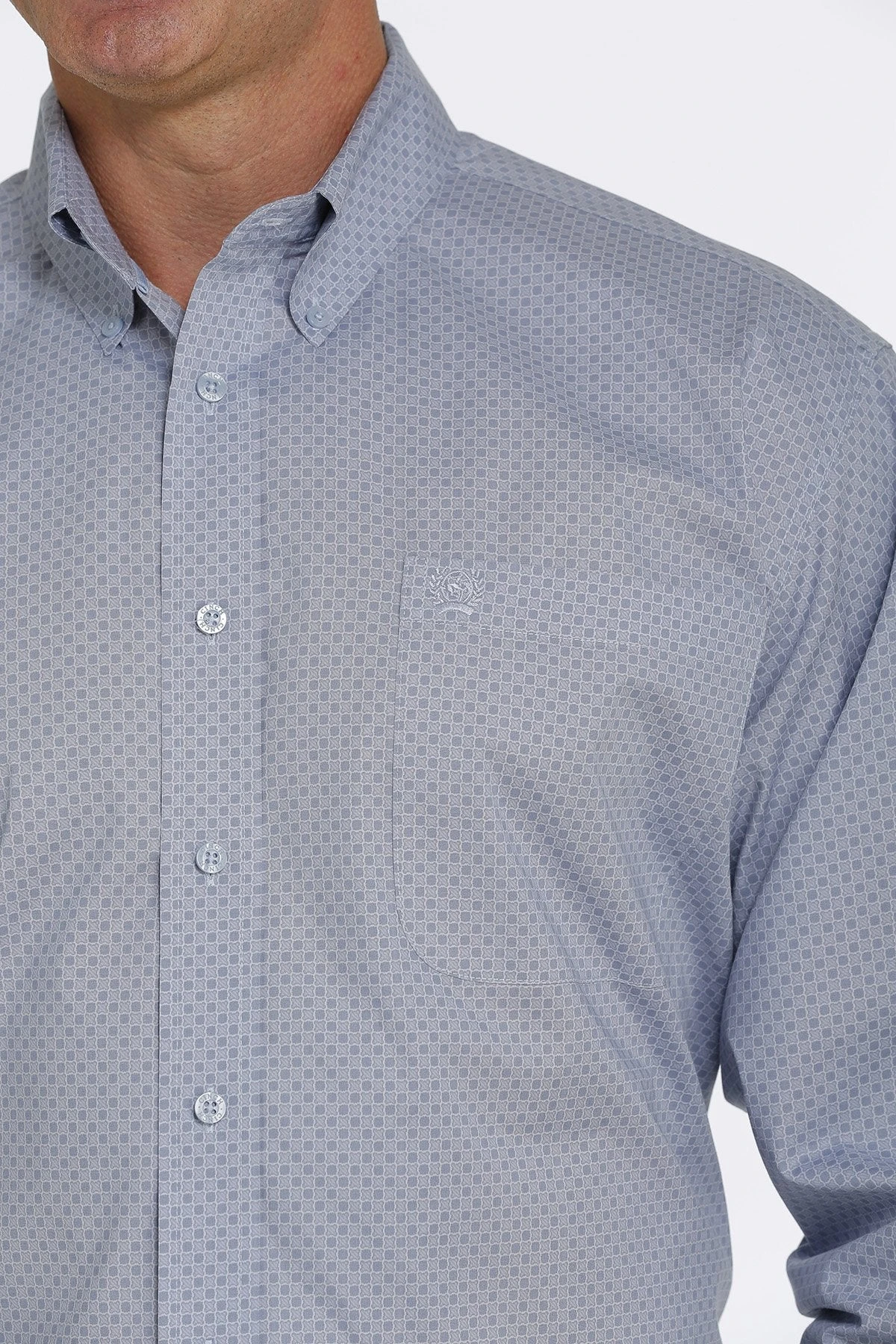 Cinch Men’s Blue & White Square Pattern Button Down Long Sleeve