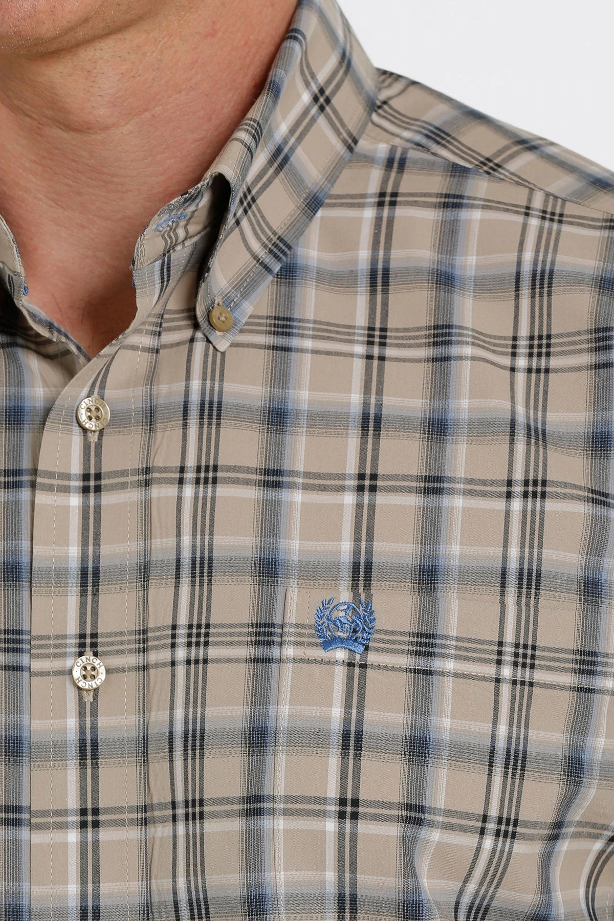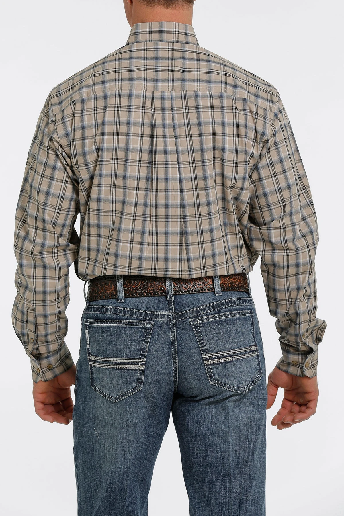 Khaki Plaid Long Sleeve Button Down Shirt.