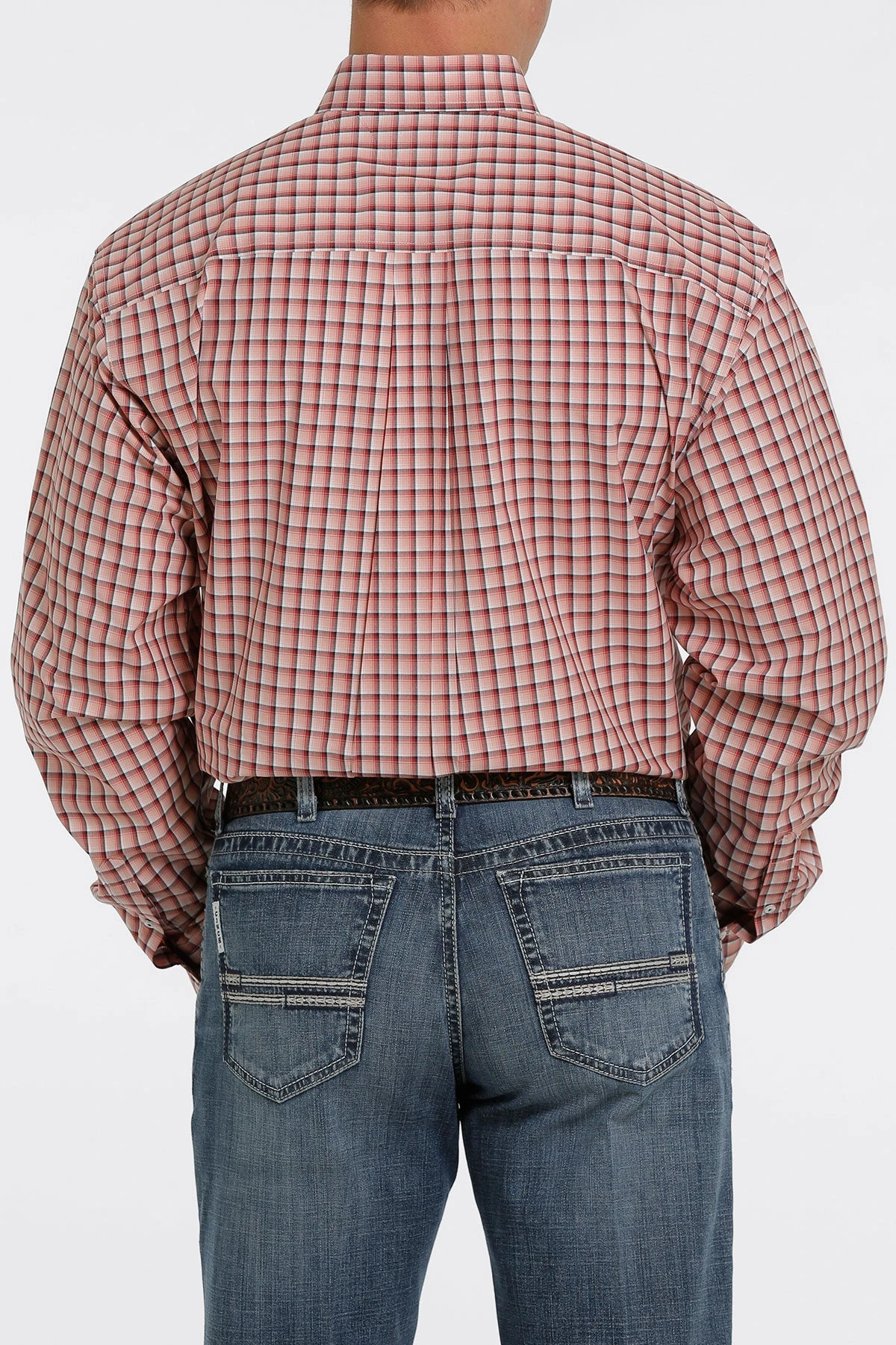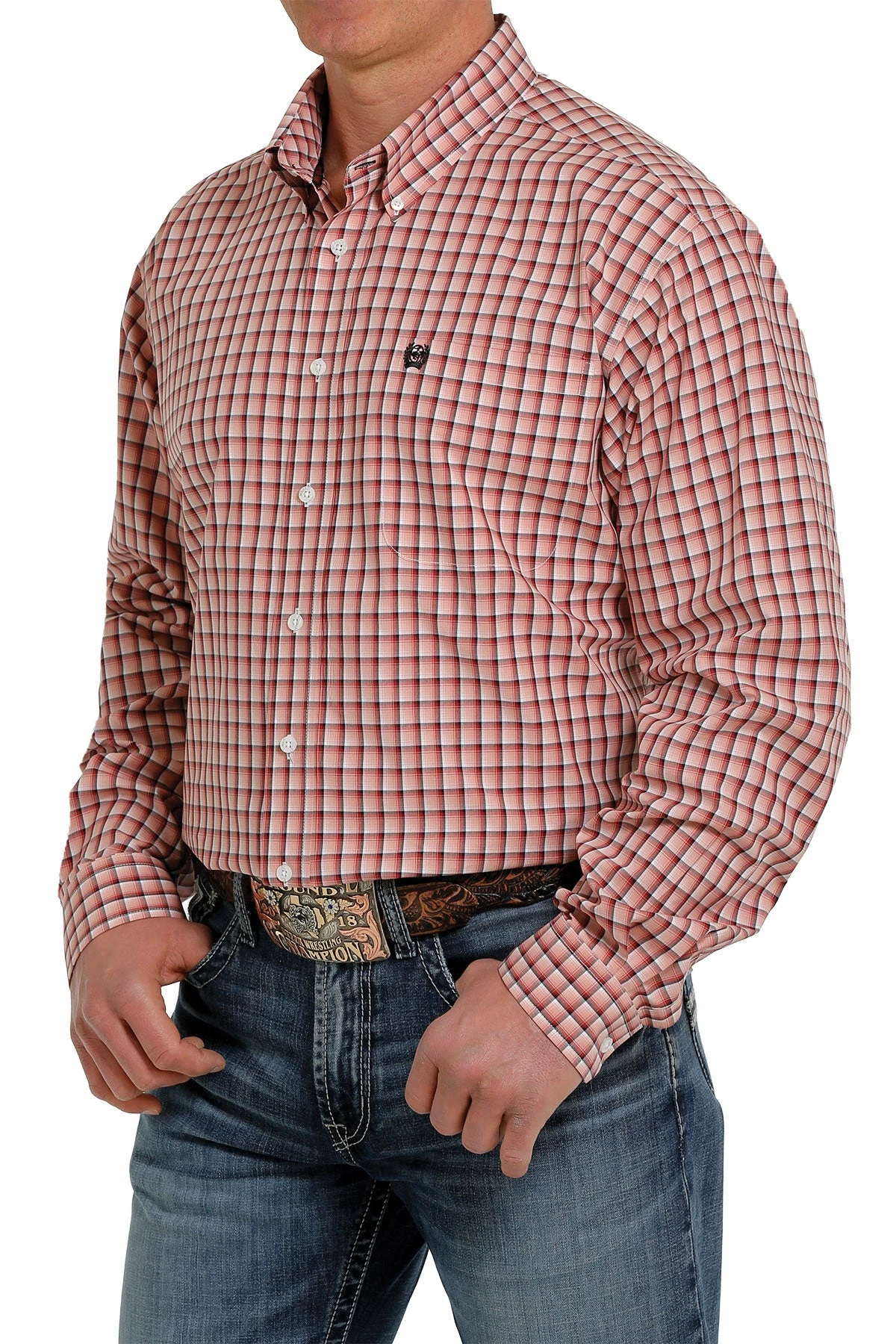 Cranberry, Pink and Navy Plaid Long Sleeve Button Down Shirt.