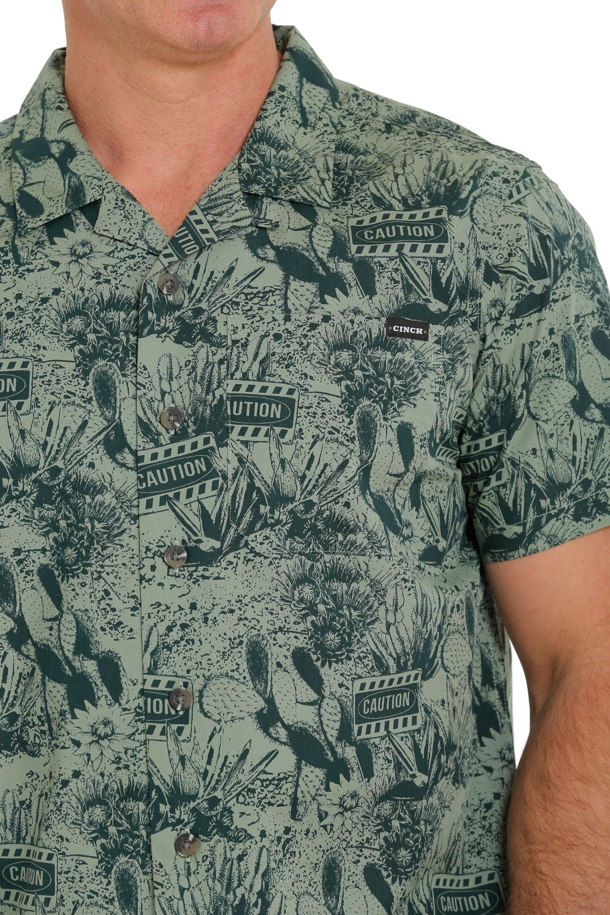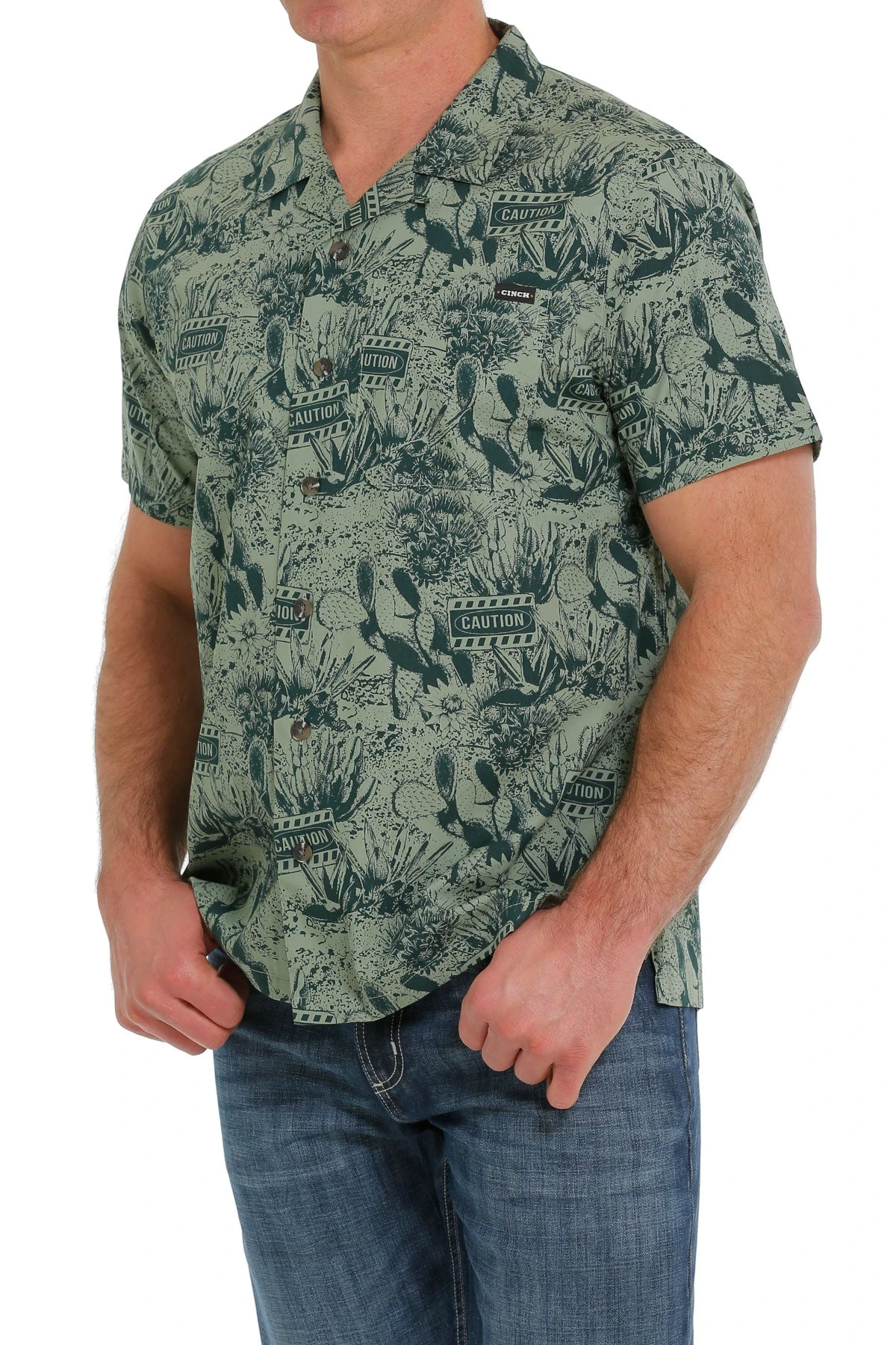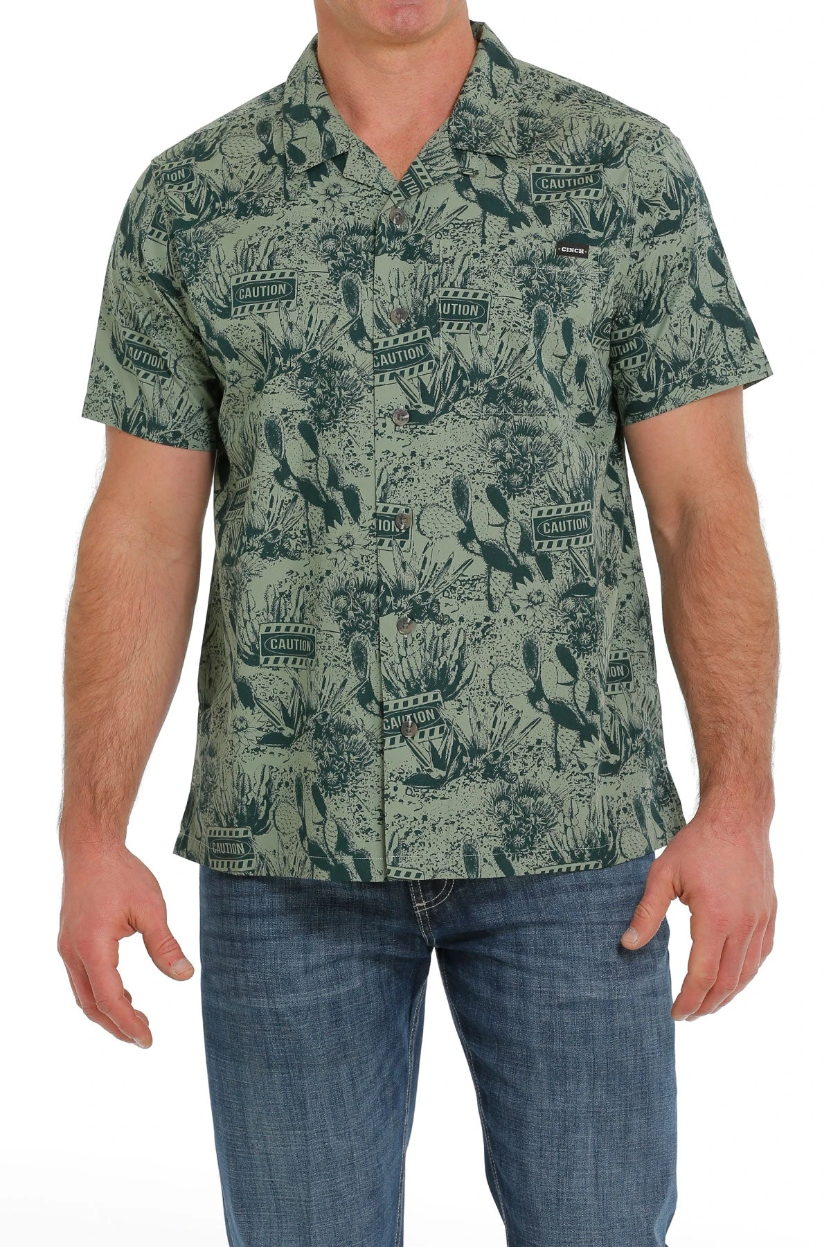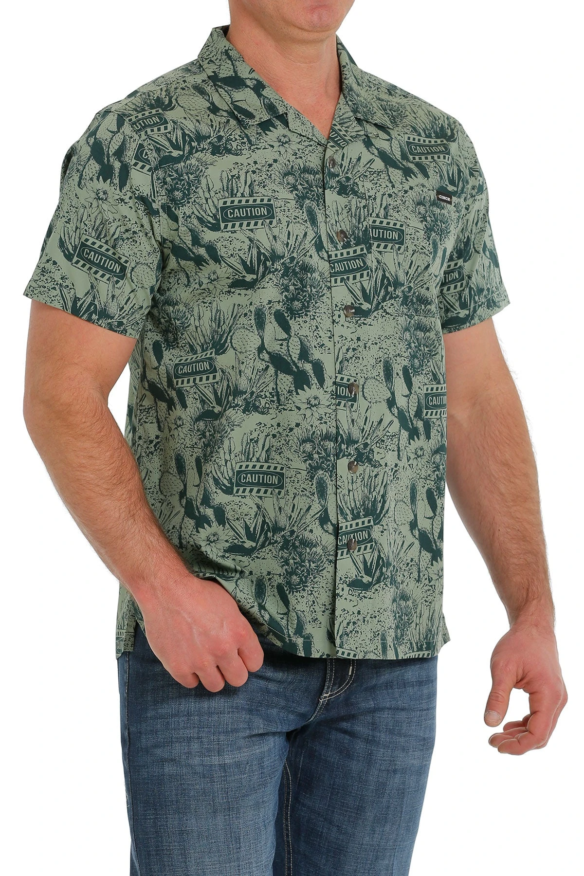 Green Cactus Print Short Sleeve Button Down Shirt.