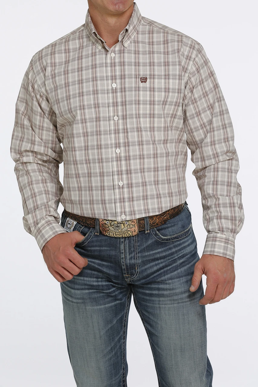 Cinch Men’s Cream Striped Button Down Long Sleeve