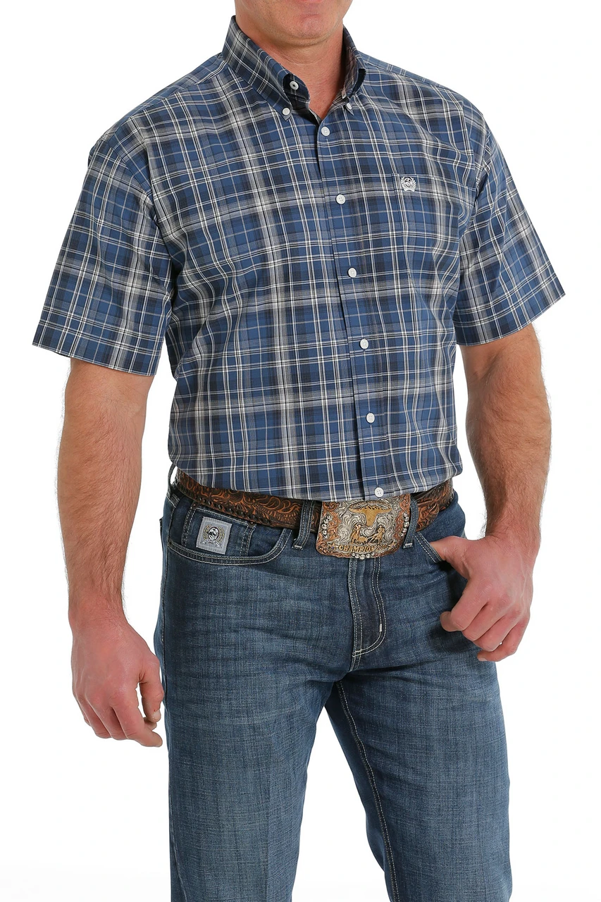 Cinch Men’s Blue Plaid Button Down Short Sleeve