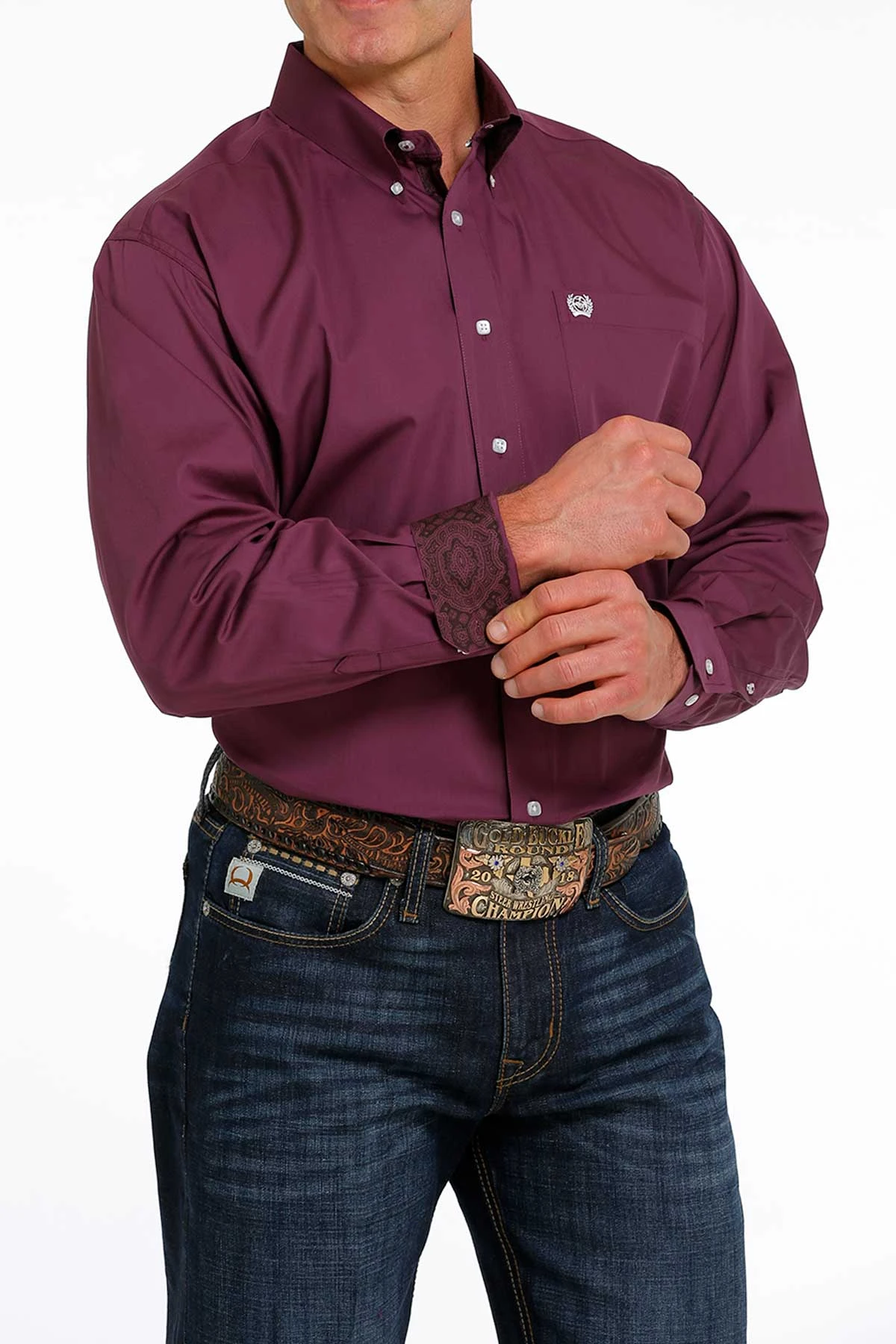 Cinch Men’s Solid Purple Button Down Long Sleeve